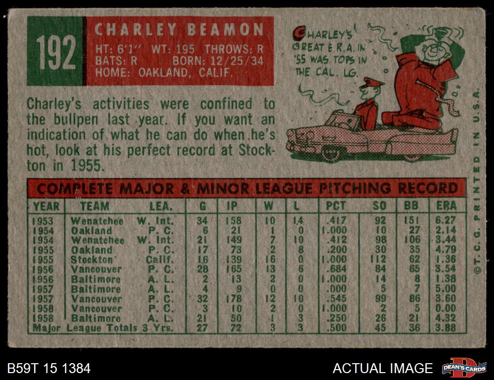 1959 Topps #192 Charley Beamon 2 - GOOD