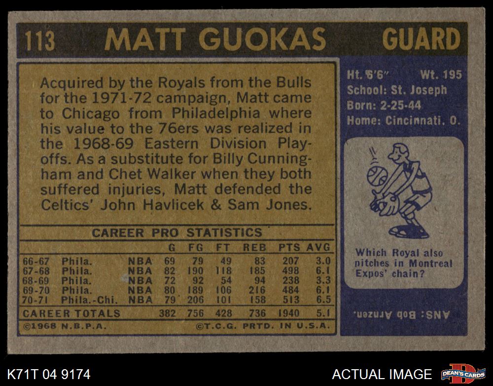 1971 Topps #113 Matt Guokas 2 - GOOD