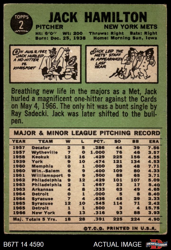 1967 Topps #2 Jack Hamilton 2 - GOOD