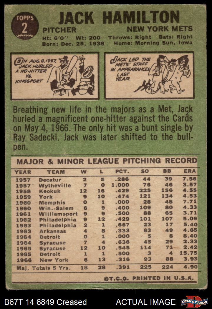 1967 Topps #2 Jack Hamilton 2.5 - GD+