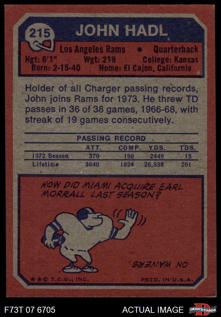 1973 Topps #215 John Hadl 3 - VG