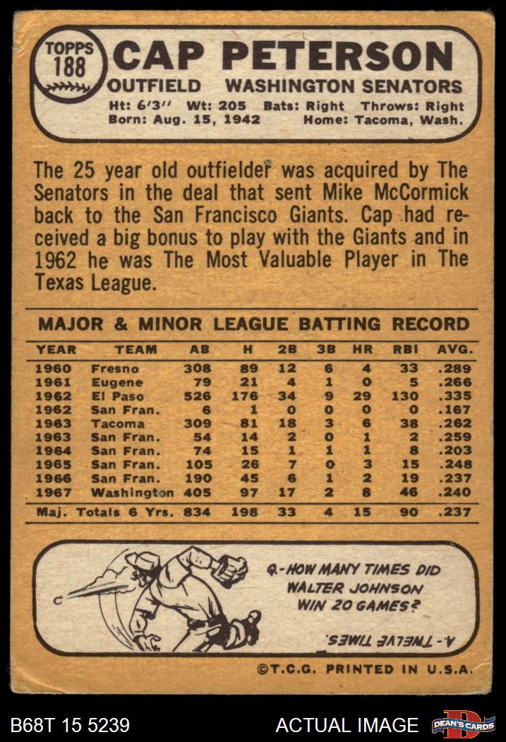 1968 Topps #188 Cap Peterson 1.5 - FAIR