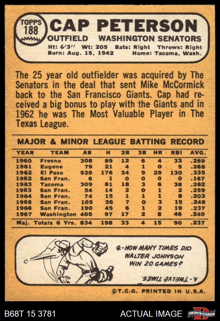 1968 Topps Baseball Cards (14,898 available)1968 Topps Senators (851 available)