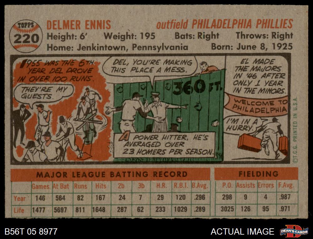 1956 Topps #220 Del Ennis 6 - EX/MT