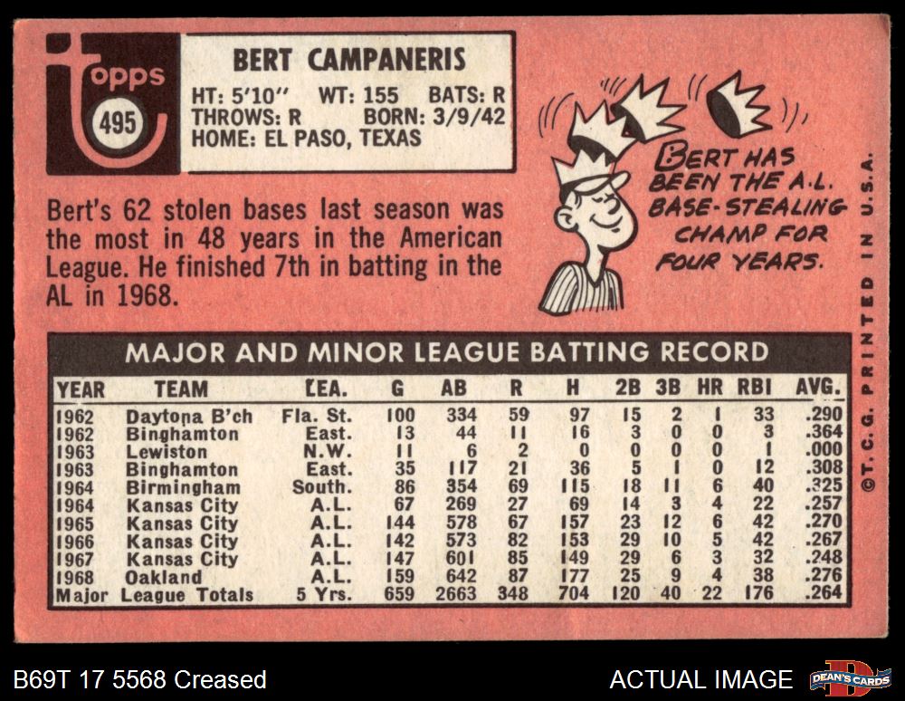 1969 Topps #495 Bert Campaneris 2 - GOOD