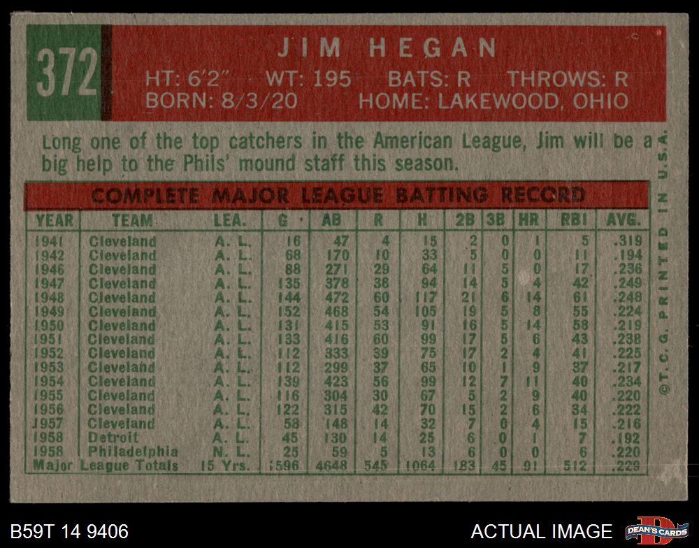 1959 Topps #372 Jim Hegan 5.5 - EX+