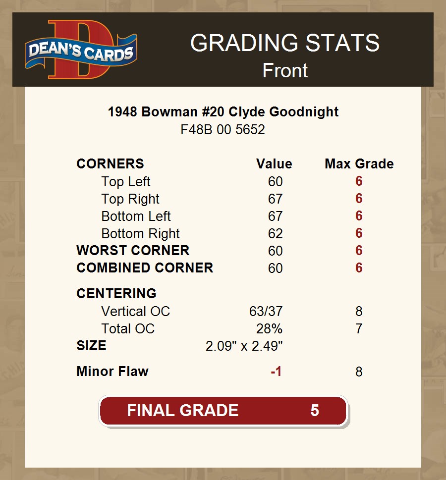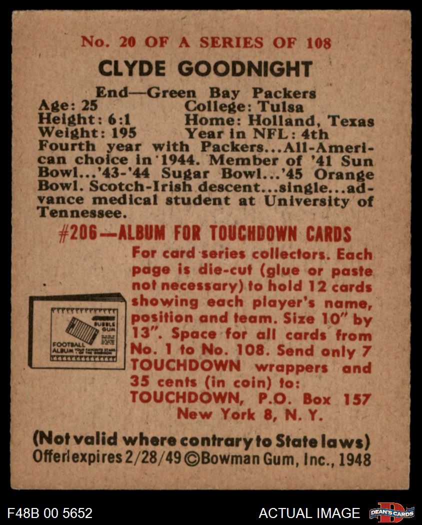 1948 Bowman #20 Clyde Goodnight 5 - EX