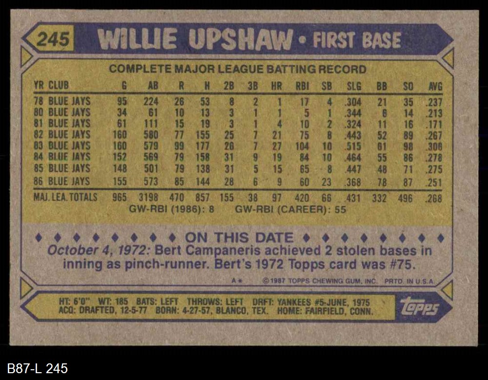 1987 Topps #245 Willie Upshaw