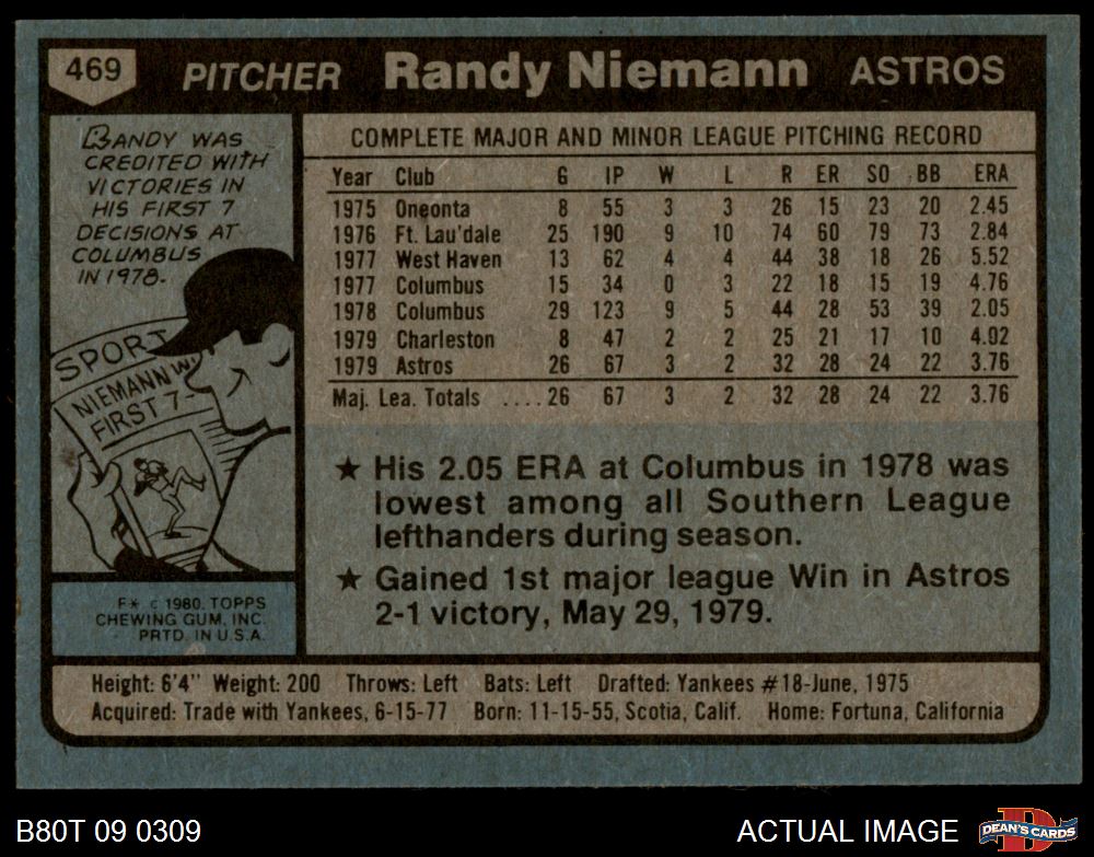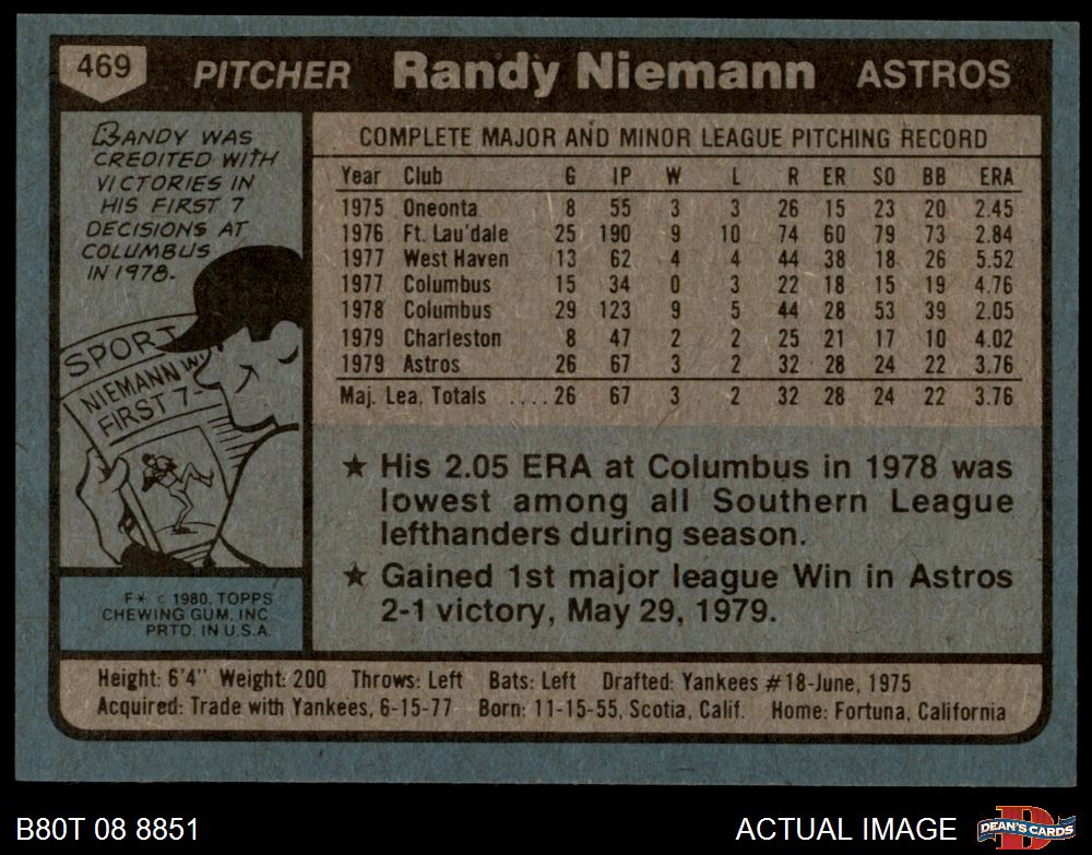 1980 Topps #469 Randy Niemann