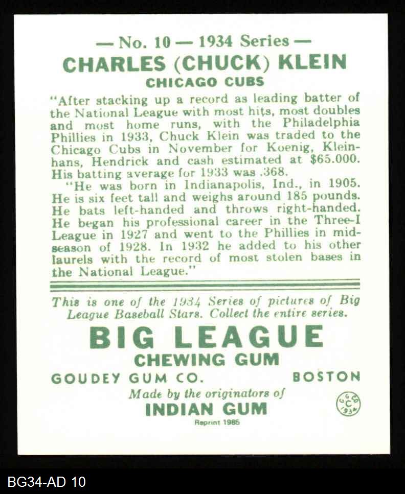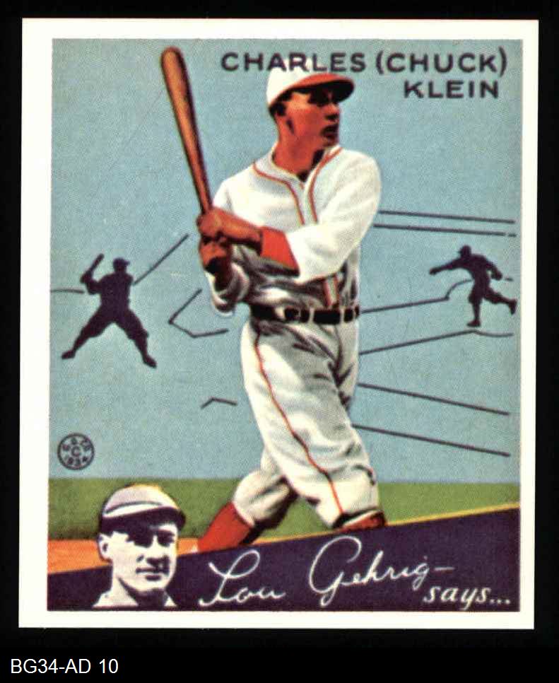 1934 Goudey Reprint #10 Chuck Klein 8 - NM/MT