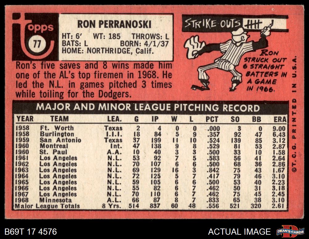 1969 Topps #77 LA Ron Perranoski 4.5 - VG/EX+