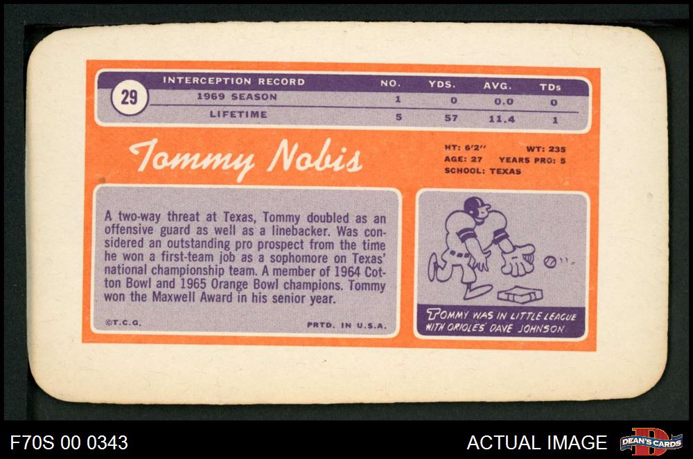1970 Topps Super #29 Tommy Nobis 6 - EX/MT