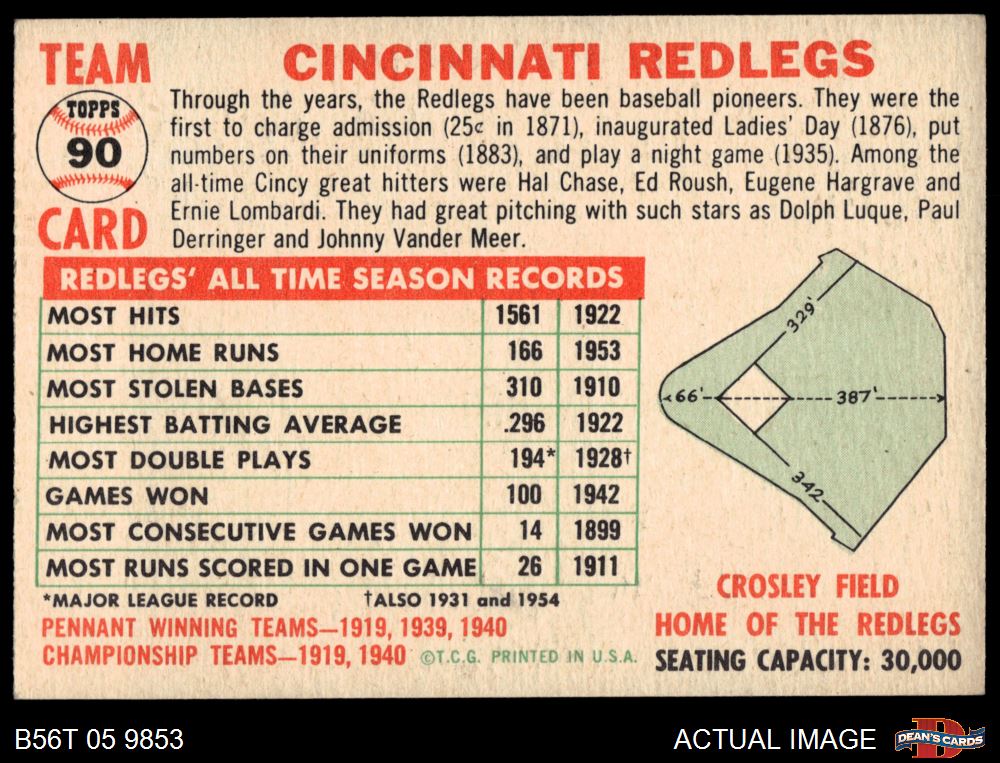 1956 Topps #90 CEN Reds Team 5 - EX