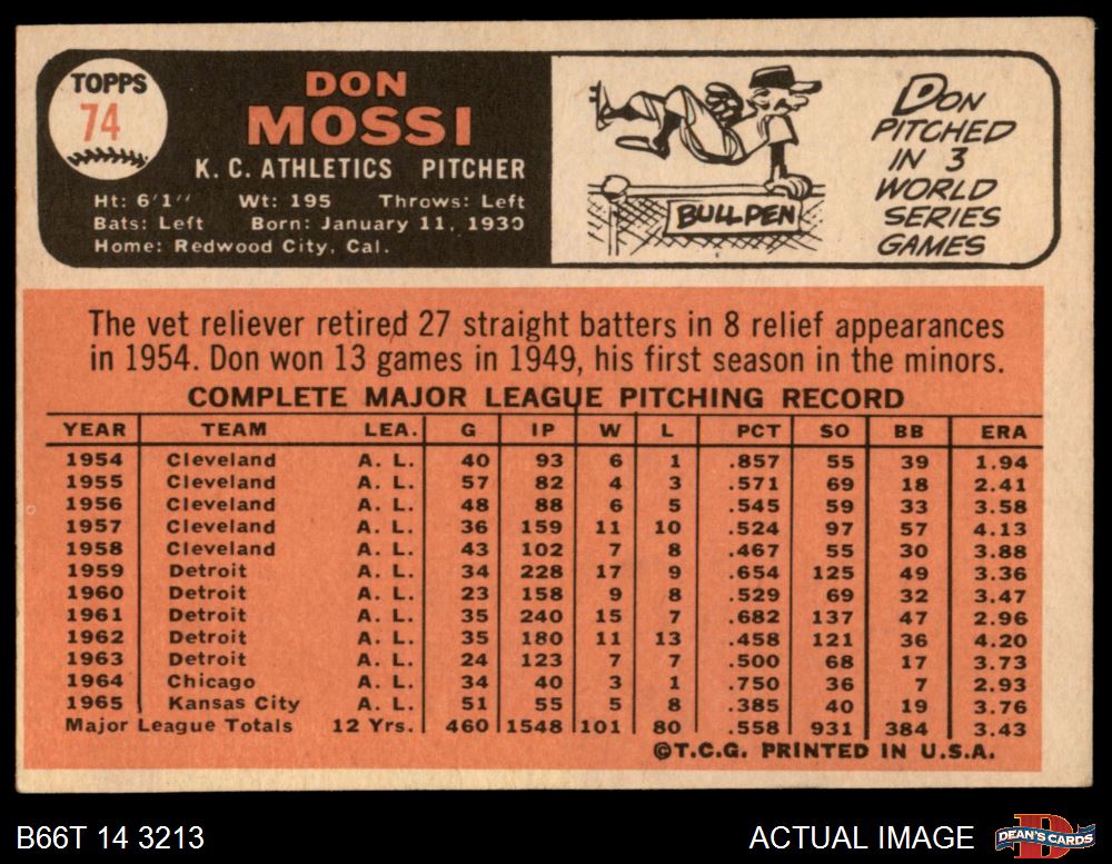 1966 Topps #74 Don Mossi 4 - VG/EX