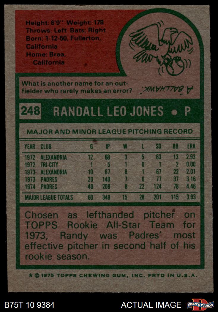 1975 Topps #248 Randy Jones 6 - EX/MT