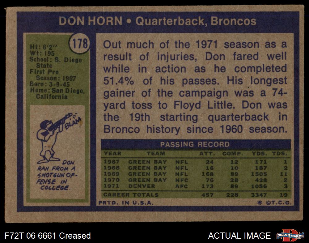 1972 Topps #178 Don Horn 2 - GOOD