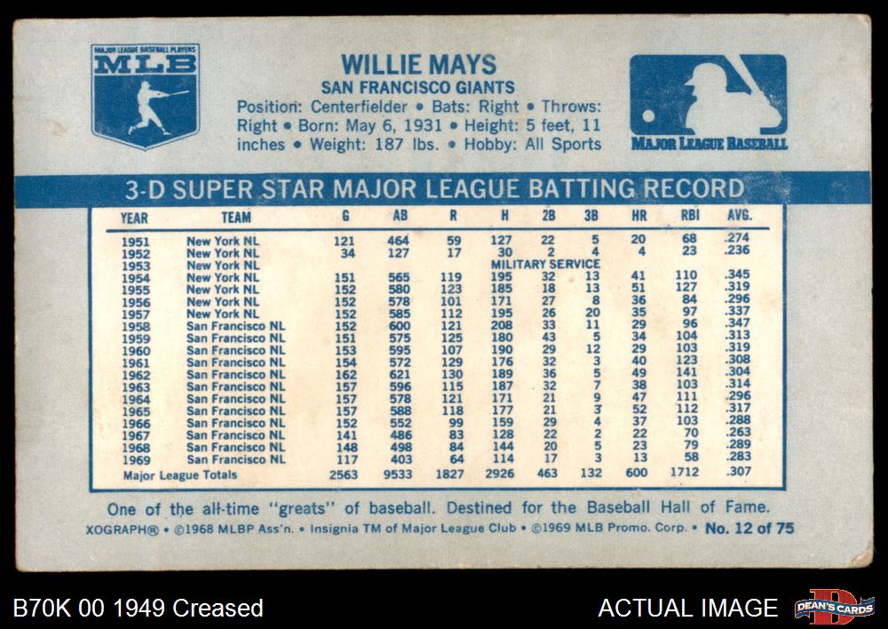 1970 Kellogg's #12 Willie Mays 3 - VG