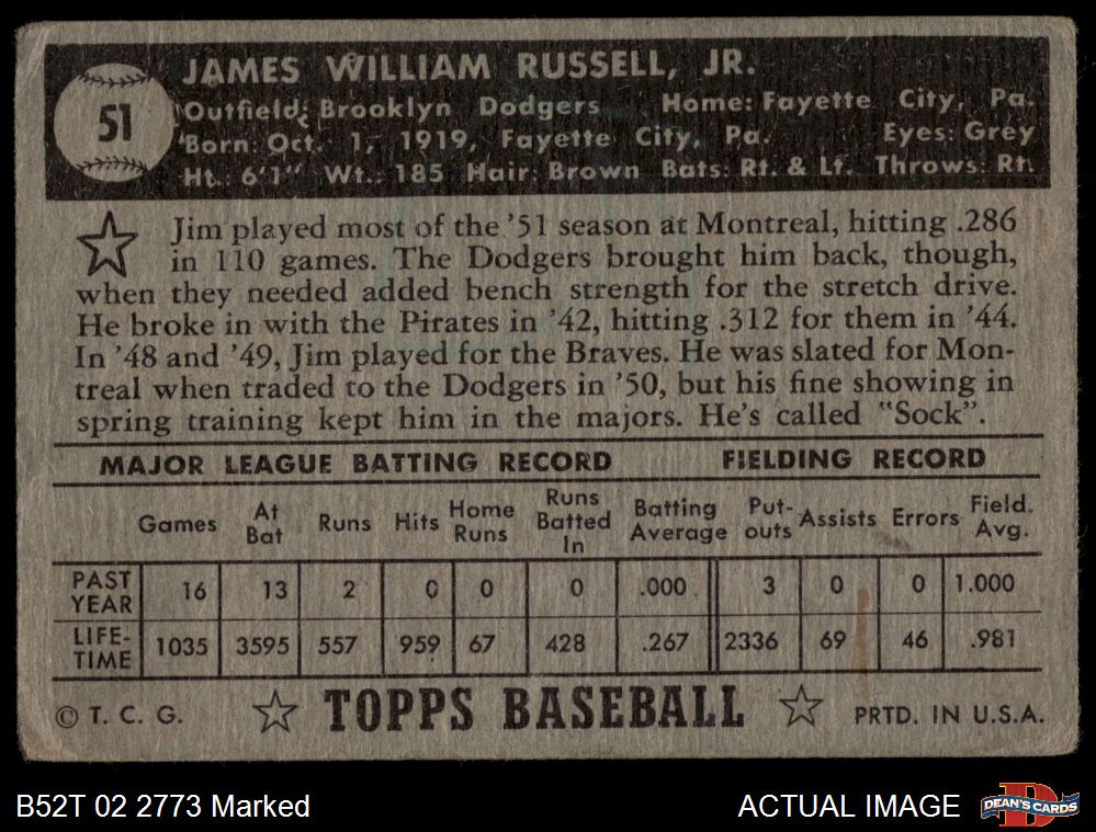 1952 Topps Baseball Cards (2,325 available)1952 Topps Dodgers (246 available)