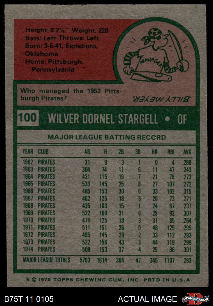 1975 Topps #100 Willie Stargell 7 - NM
