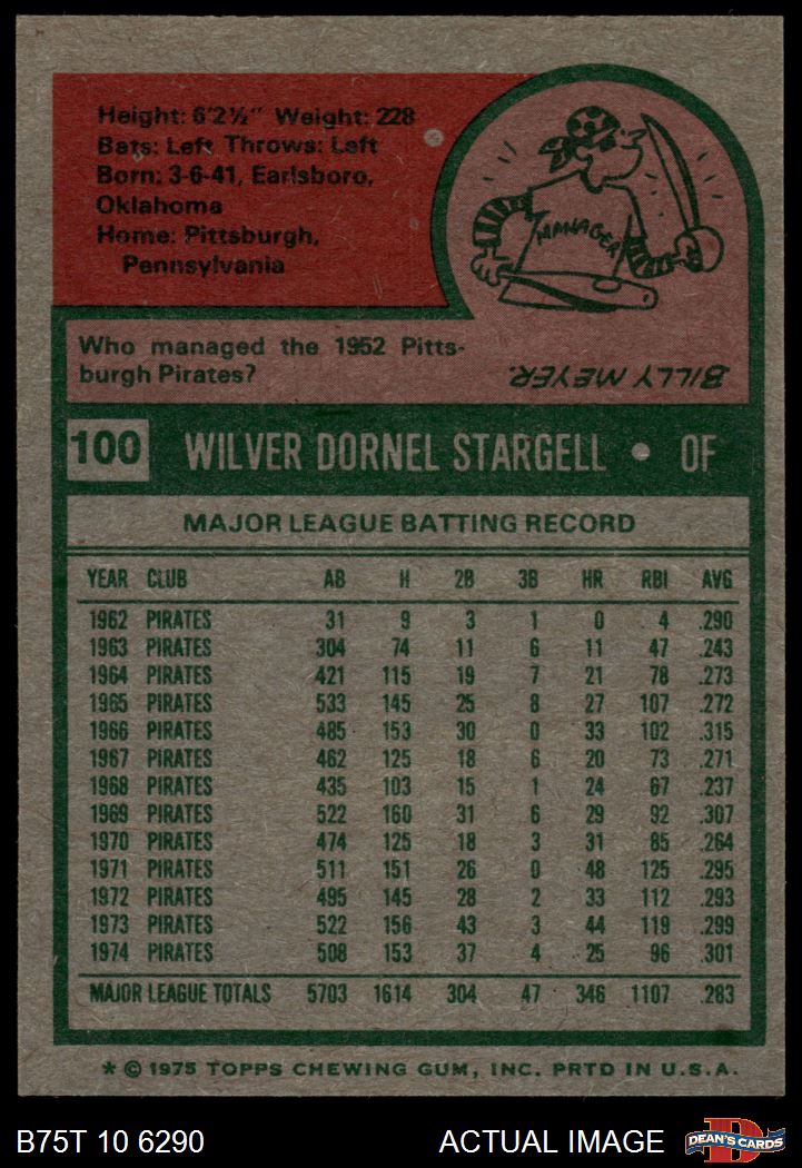 1975 Topps #100 Willie Stargell 8 - NM/MT