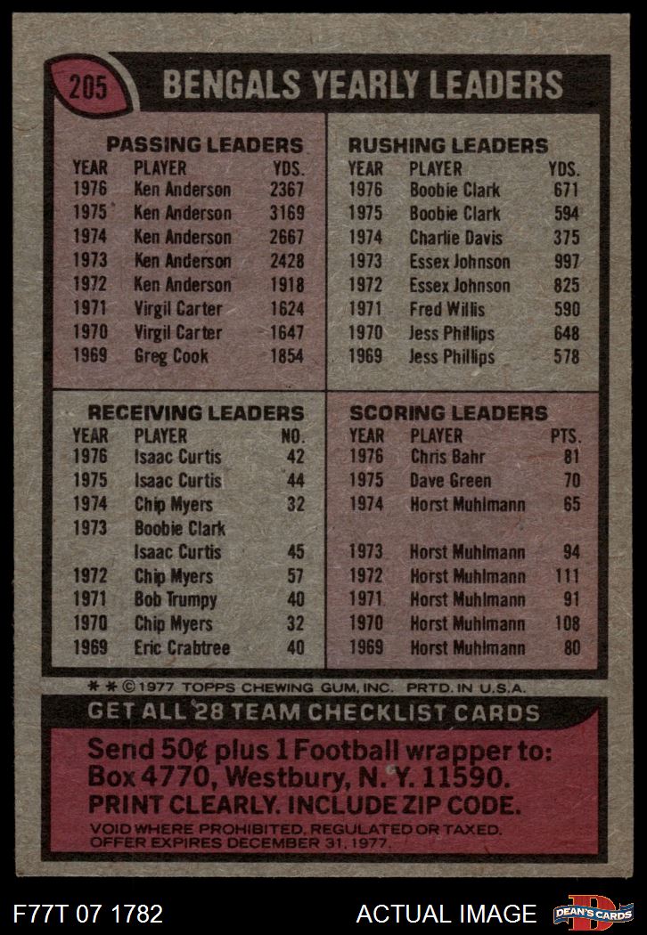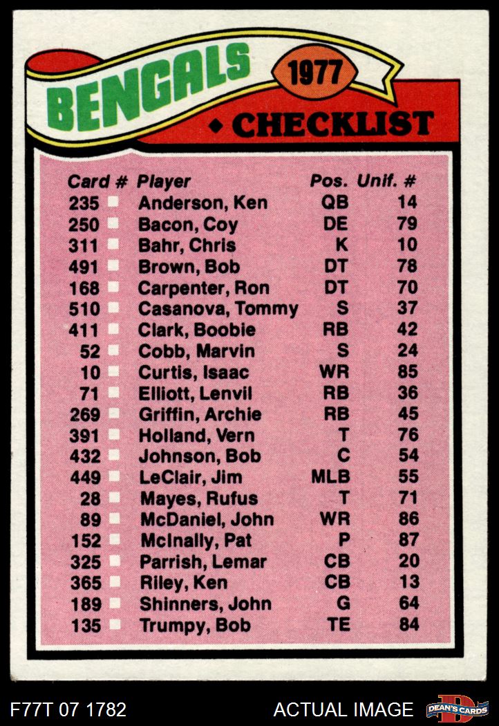 1977 Topps #205 Bengals Team Checklist 4 - VG/EX