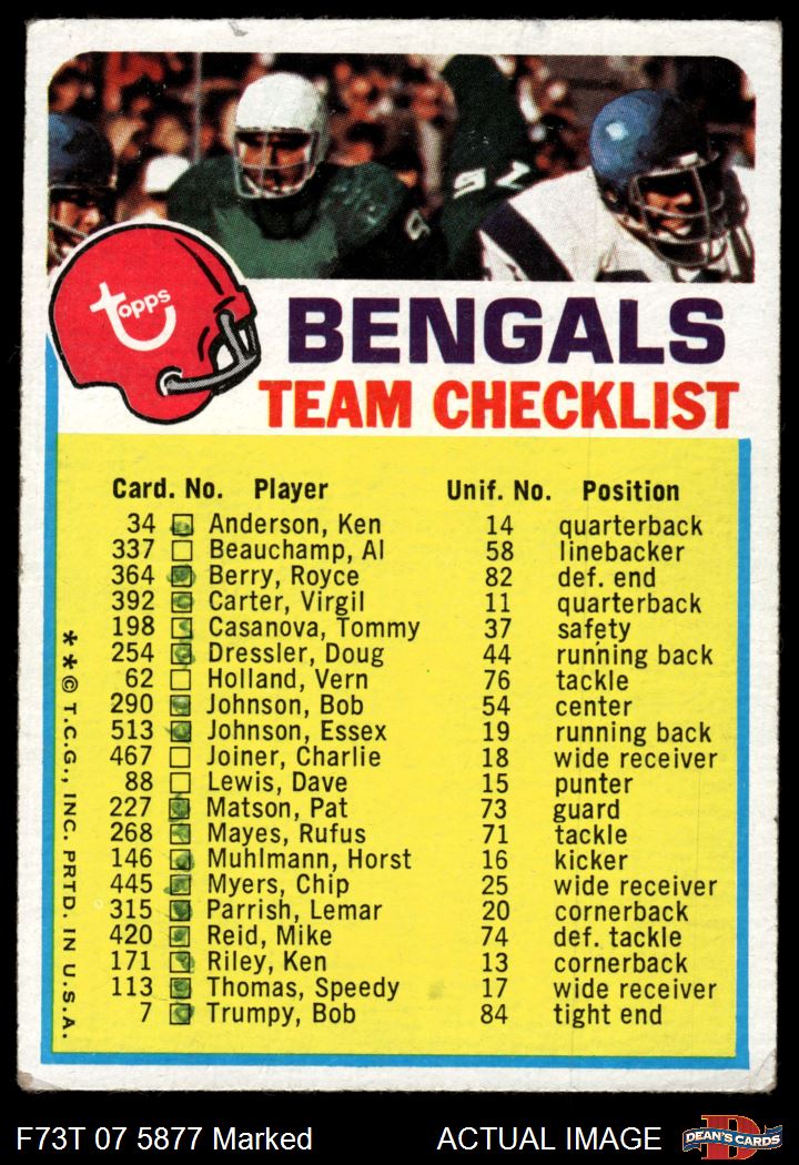1973 Topps Checklist Bengals 1.5 - FAIR