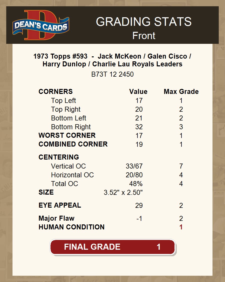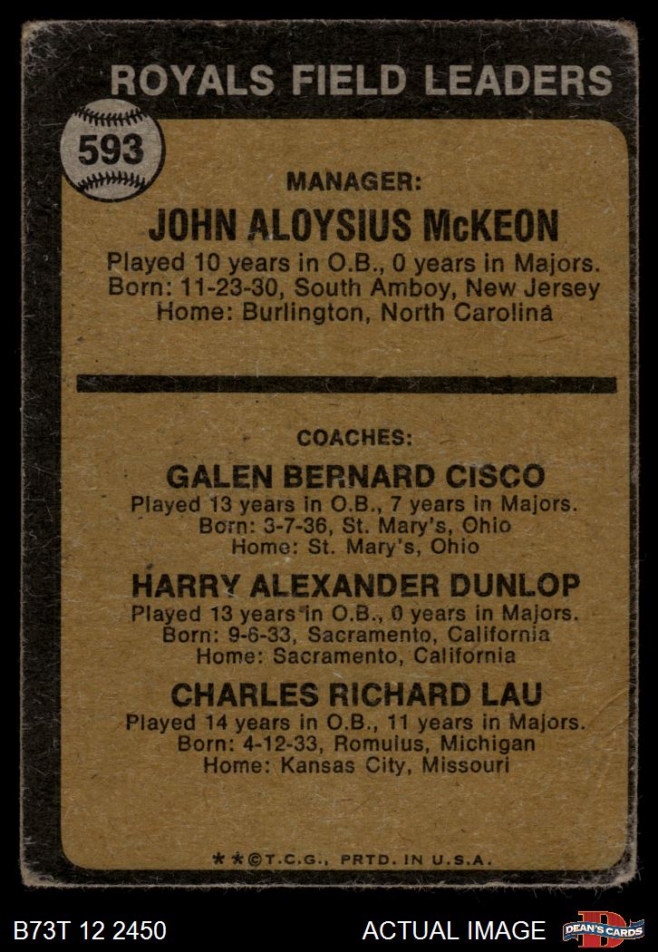 1973 Topps #593 - Jack McKeon / Galen Cisco / Harry Dunlop / Charlie Lau Royals Leaders 1 - POOR
