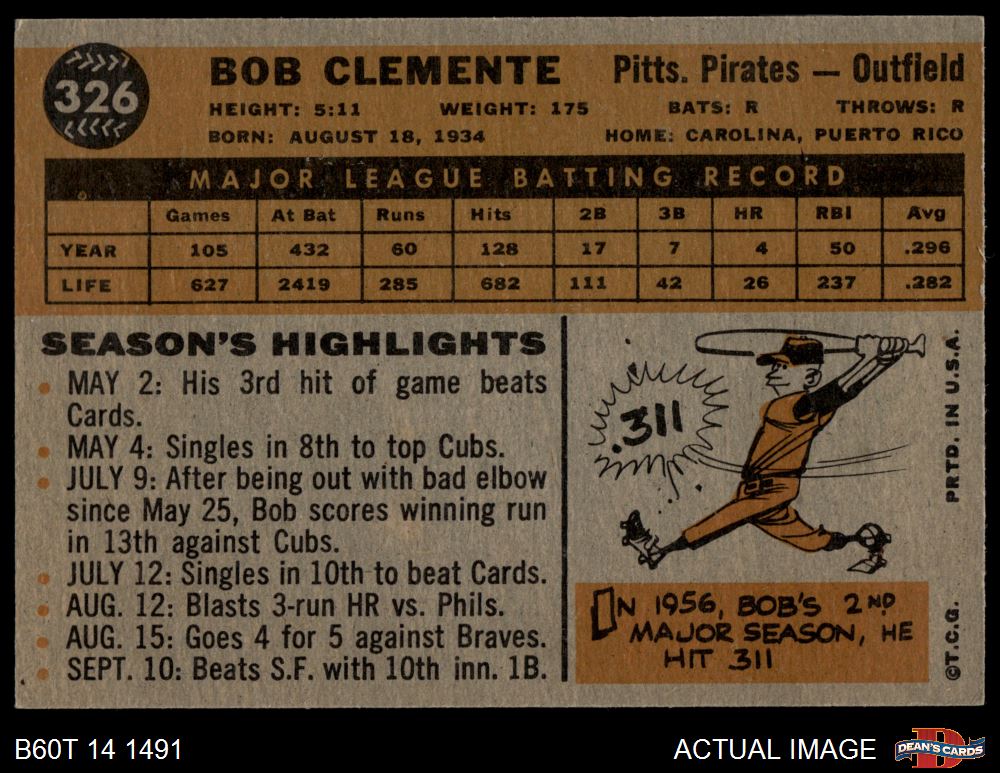 1960 Topps #326 Roberto Clemente 4.5 - VG/EX+