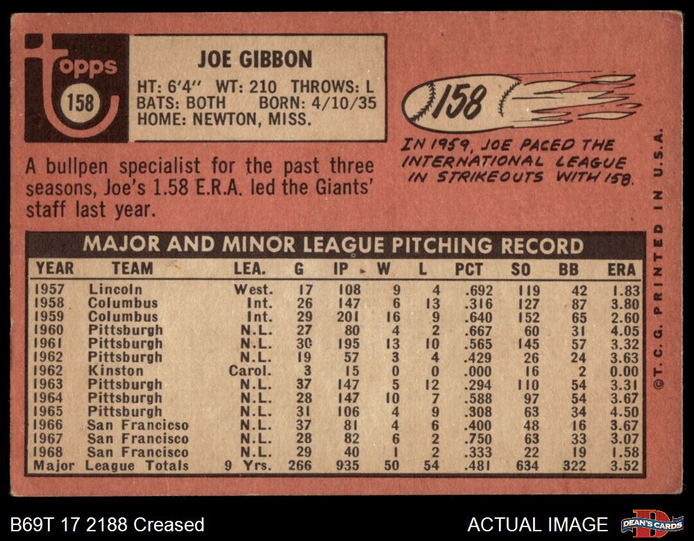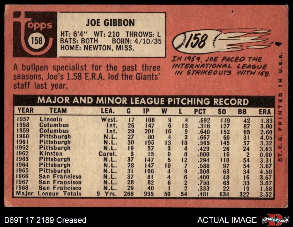 1969 Topps #158 Joe Gibbon 2 - GOOD