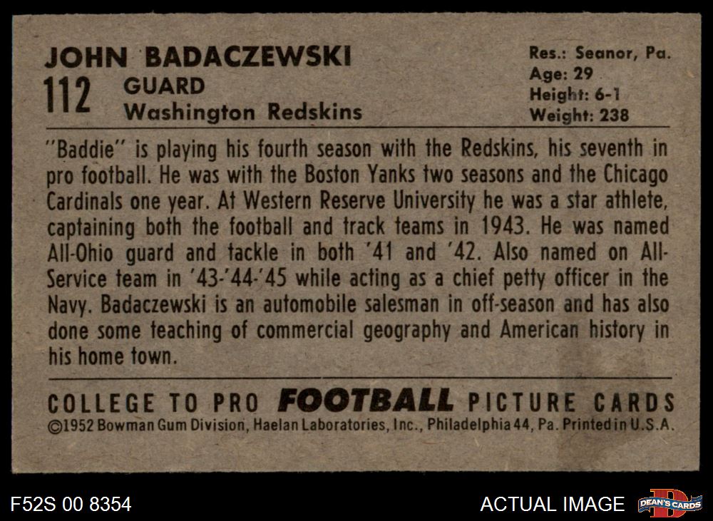 1952 Bowman Small #112 John Badaczewski