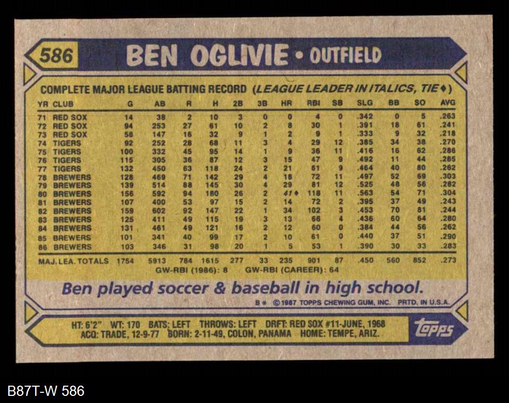 1987 Topps #586 Ben Oglivie