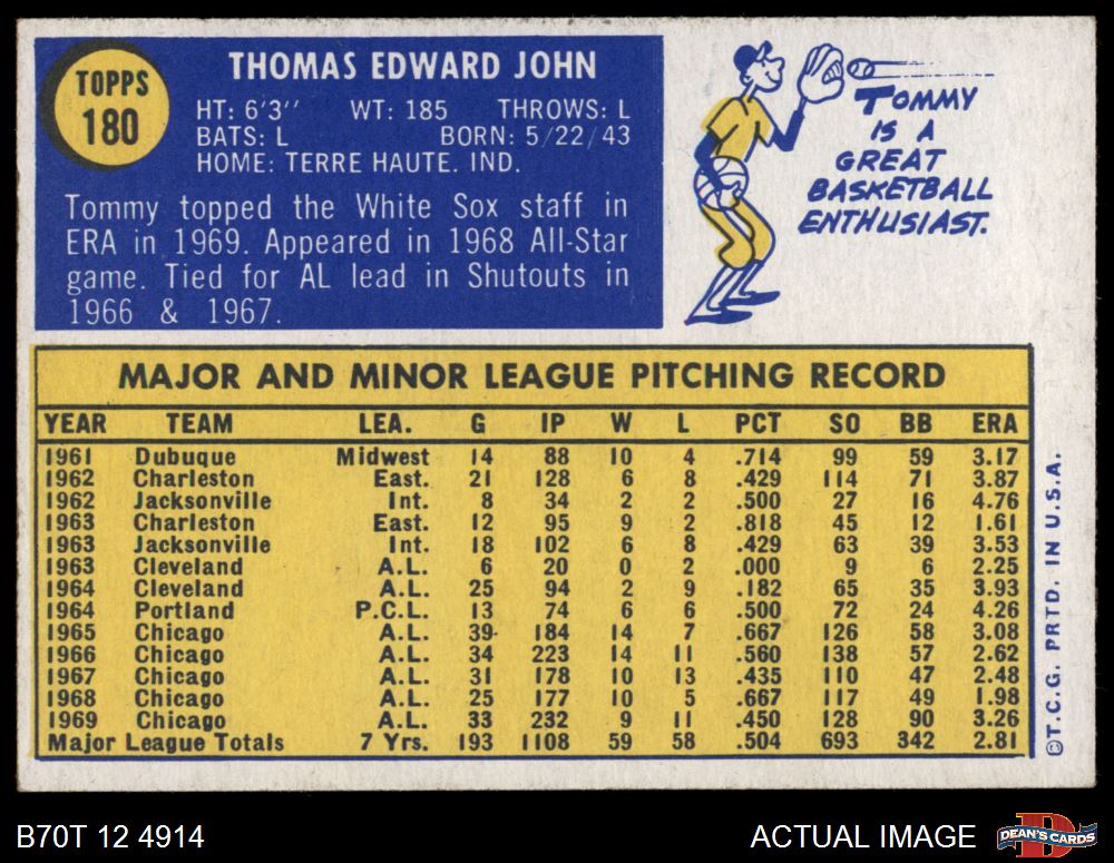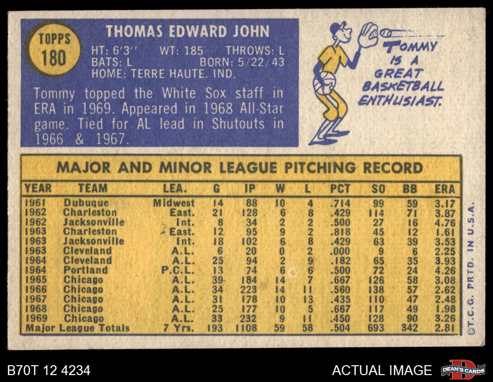 1970 Topps #180 Tommy John