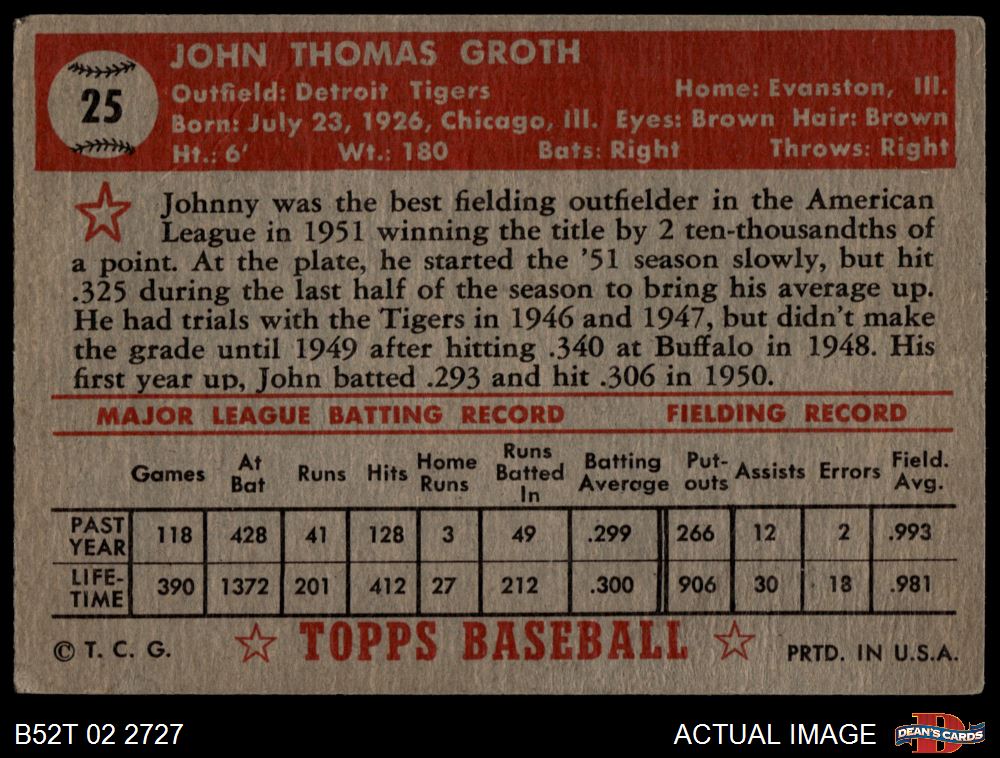 1952 Topps #25 Johnny Groth