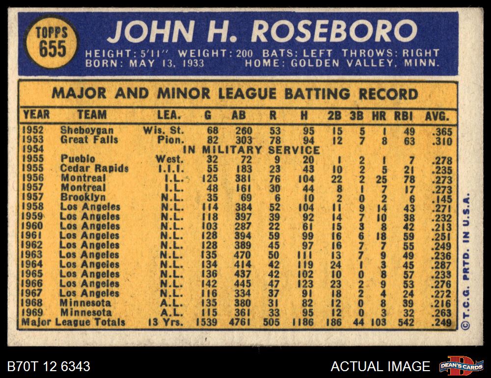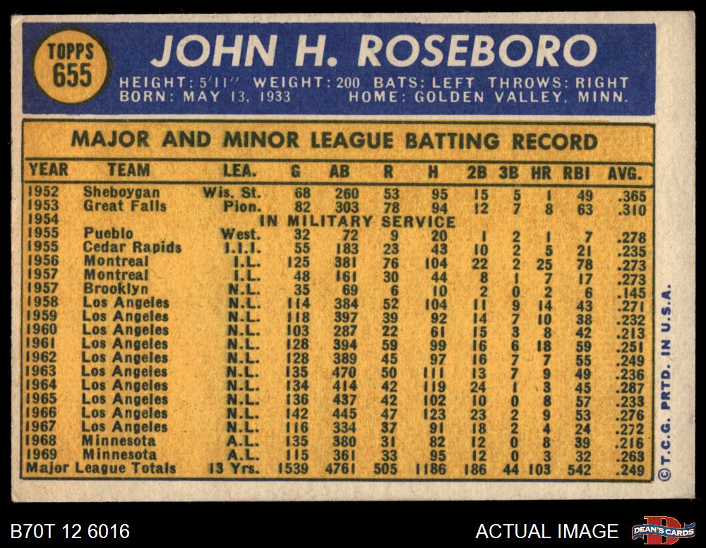 1970 Topps #655 John Roseboro 4 - VG/EX