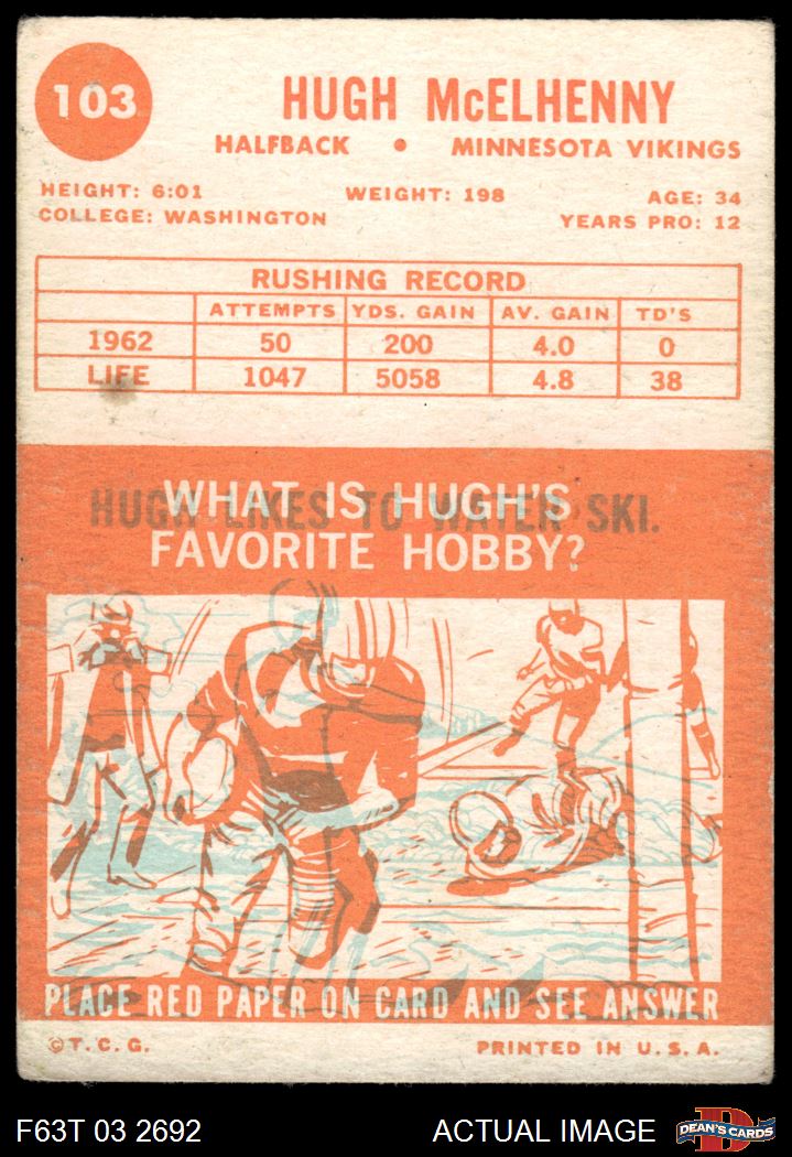 1963 Topps #103 Hugh McElhenny 3 - VG