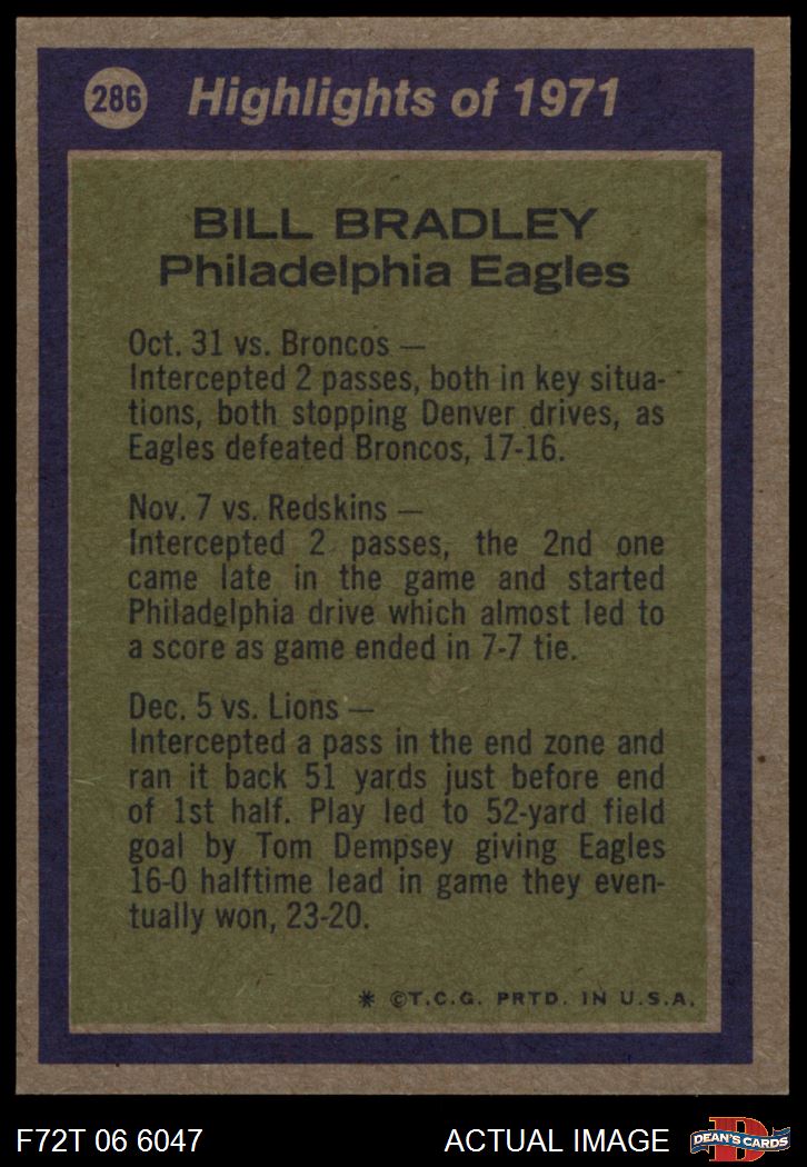 1972 Topps #286 - Bill Bradley All-Pro 7 - NM