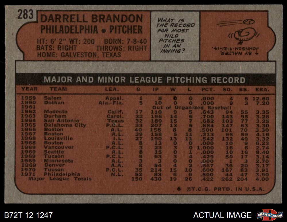 1972 Topps #283 Darrell Brandon 6.5 - EX/MT+