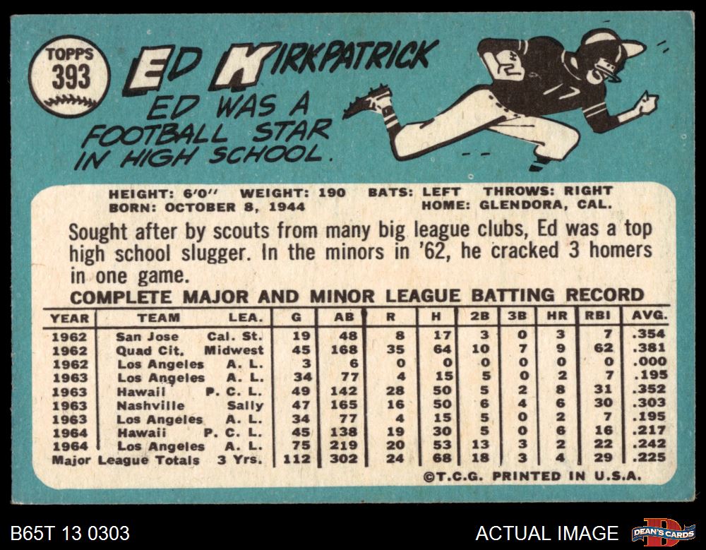1965 Topps #393 Ed Kirkpatrick 4.5 - VG/EX+