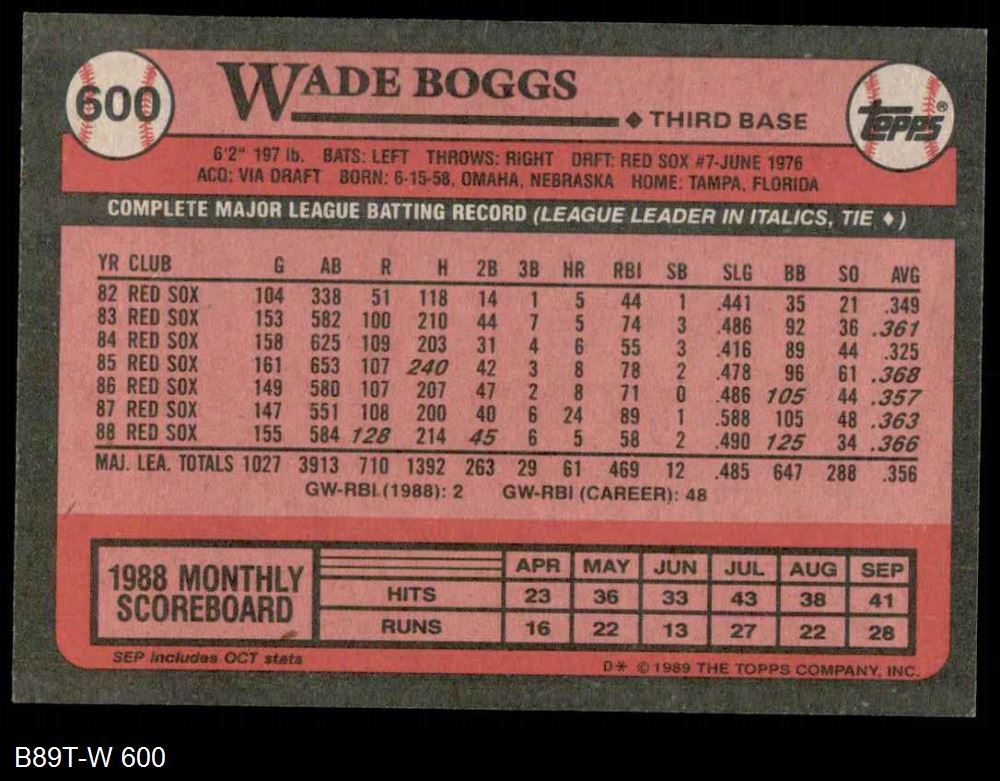 1989 Topps #600 Wade Boggs