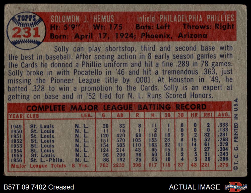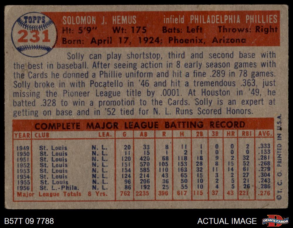 1957 Topps #231 Solly Hemus Front Thumbnail