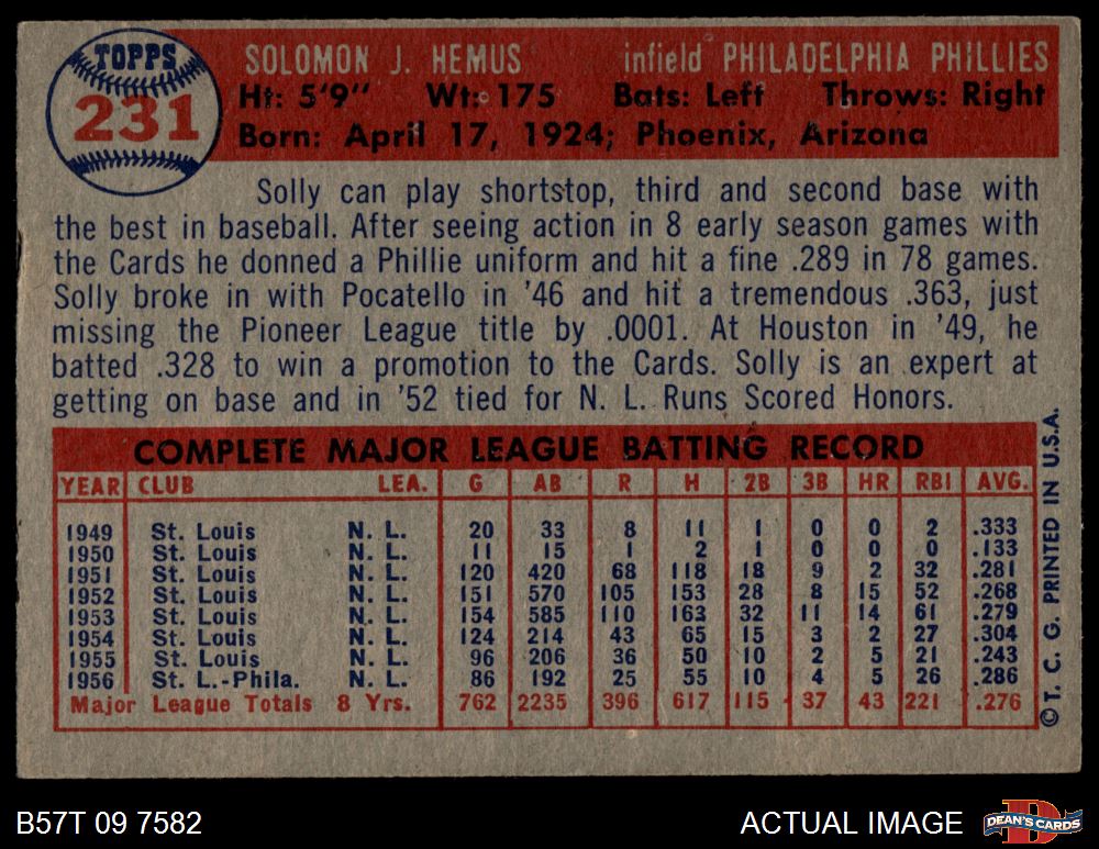 1957 Topps #231 Solly Hemus
