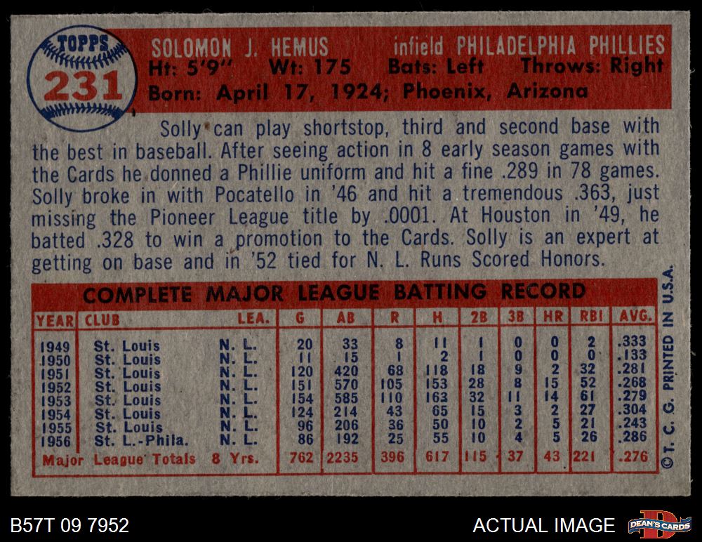 1957 Topps #231 Solly Hemus 5.5 - EX+
