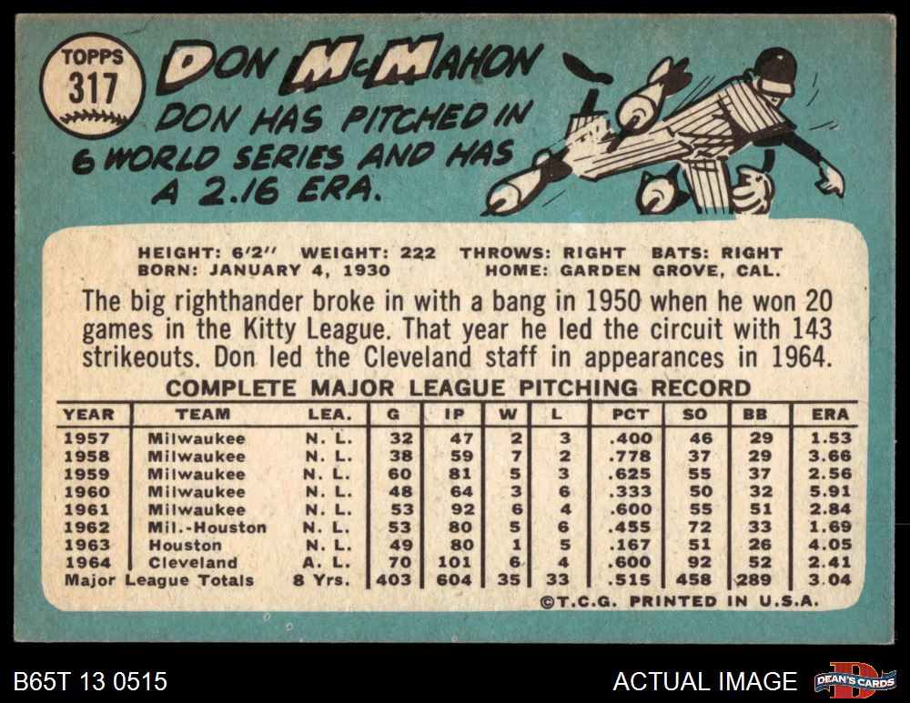 1965 Topps #317 Don McMahon 3 - VG