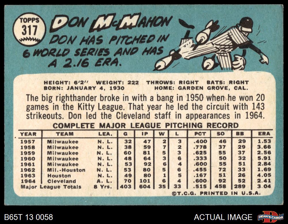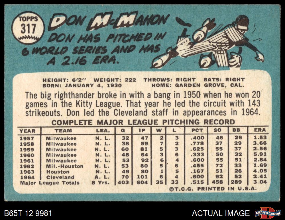 1965 Topps #317 Don McMahon 4 - VG/EX