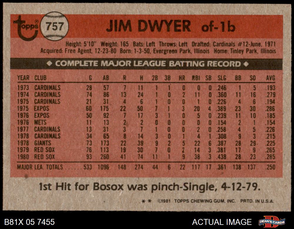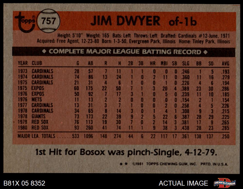 1981 Topps Traded #757 T Jim Dwyer 6 - EX/MT