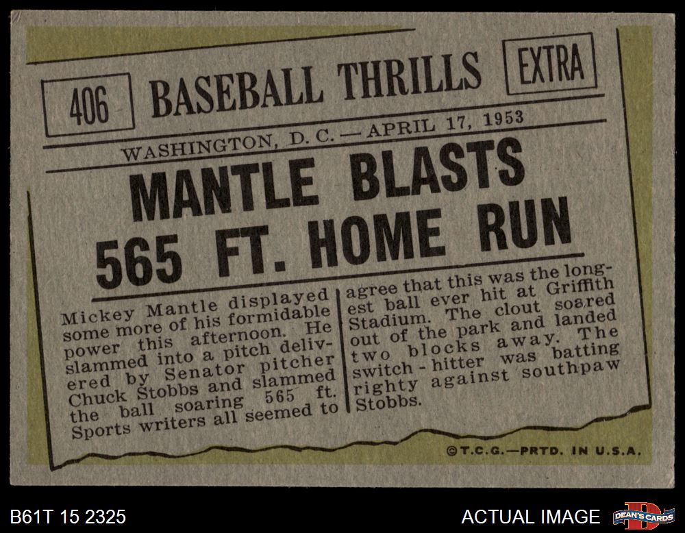 1961 Topps #406  -  Mickey Mantle Baseball Thrills Front Thumbnail