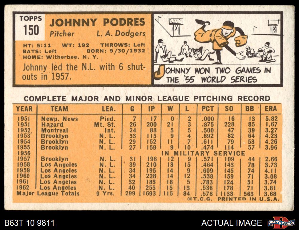 1963 Topps #150 Johnny Podres 4 - VG/EX