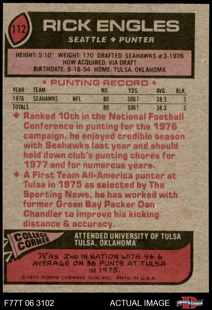 1977 Topps #112 Rick Engles 8 - NM/MT
