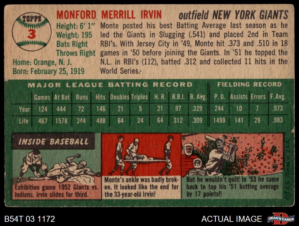 1954 Topps #3 WHT Monte Irvin