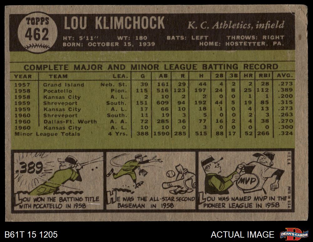 1961 Topps #462 Lou Klimchock 1.5 - FAIR